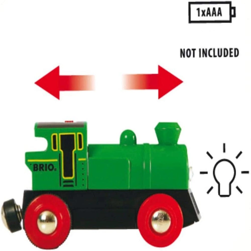 Full steam ahead with this classic, green battery powered engine. The forward and reverse functions as well as headlights that light up, makes this a must-have for any BRIO railway.