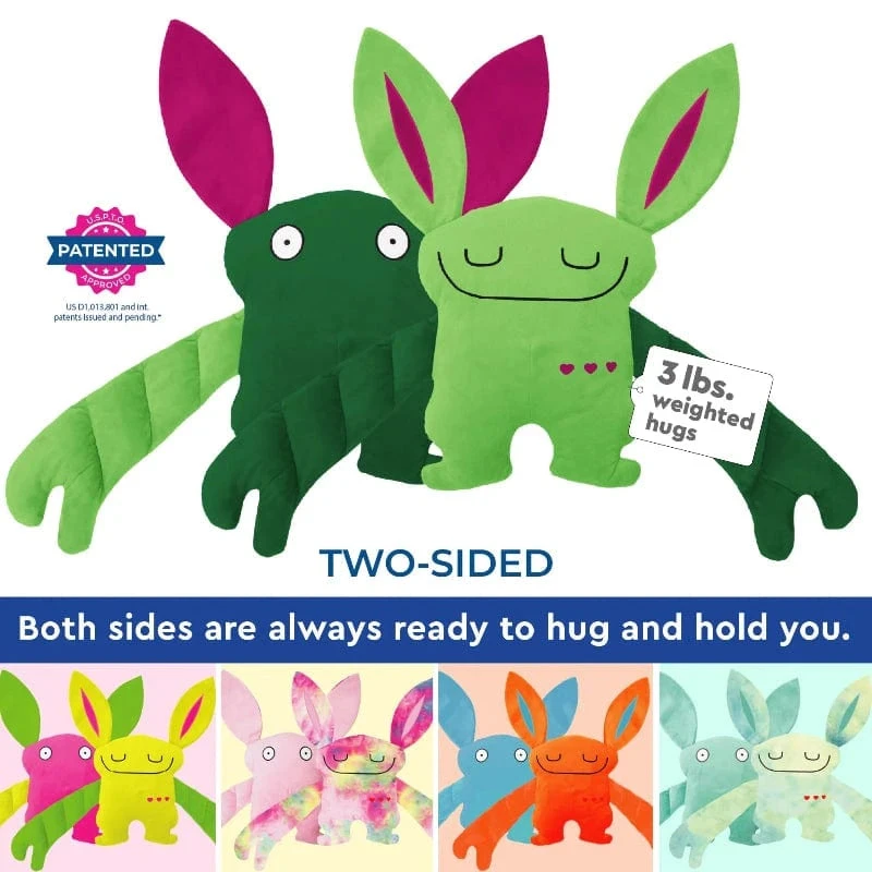 My uniquely-designed weighted arms provide deep pressure stimulation for a secure and stress-free experience, as well as peaceful sleep. With a perfect size for realistic hugs and hands-free comfort, my arms also form a loving heart to show my unconditional affection. Plus, my vigilant eyes in the back of my head keep you safe and protected, while my soothing and calming exterior adds an extra level of relaxation.