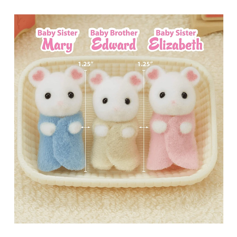 Girl triplet Mary is a ball of energy. She’s always on the go, and can often be seen laughing with Elizabeth. Boy triplet Edward is a sleepyhead. While Mary and Elizabeth are often heard laughing, Edward just nods off! Girl triplet Elizabeth is always in a good mood. Whenever she sees Mary doing something fun, she can’t help tag along!