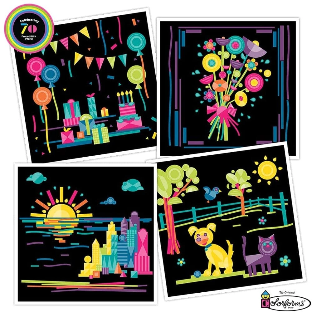 Colorforms have inspired creative expression and fun for 70 years! Celebrate this important milestone with the Colorforms 70th Anniversary Set! The classic, repositionable shapes provide endless opportunities for imaginative storytelling, and the countless combinations enhance learning through open-ended play. With pieces that Stick Like Magic, it’s more fun to play the Colorforms way!