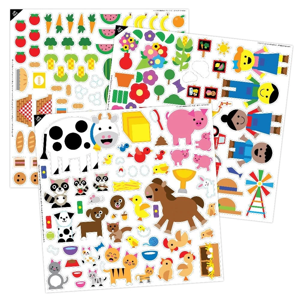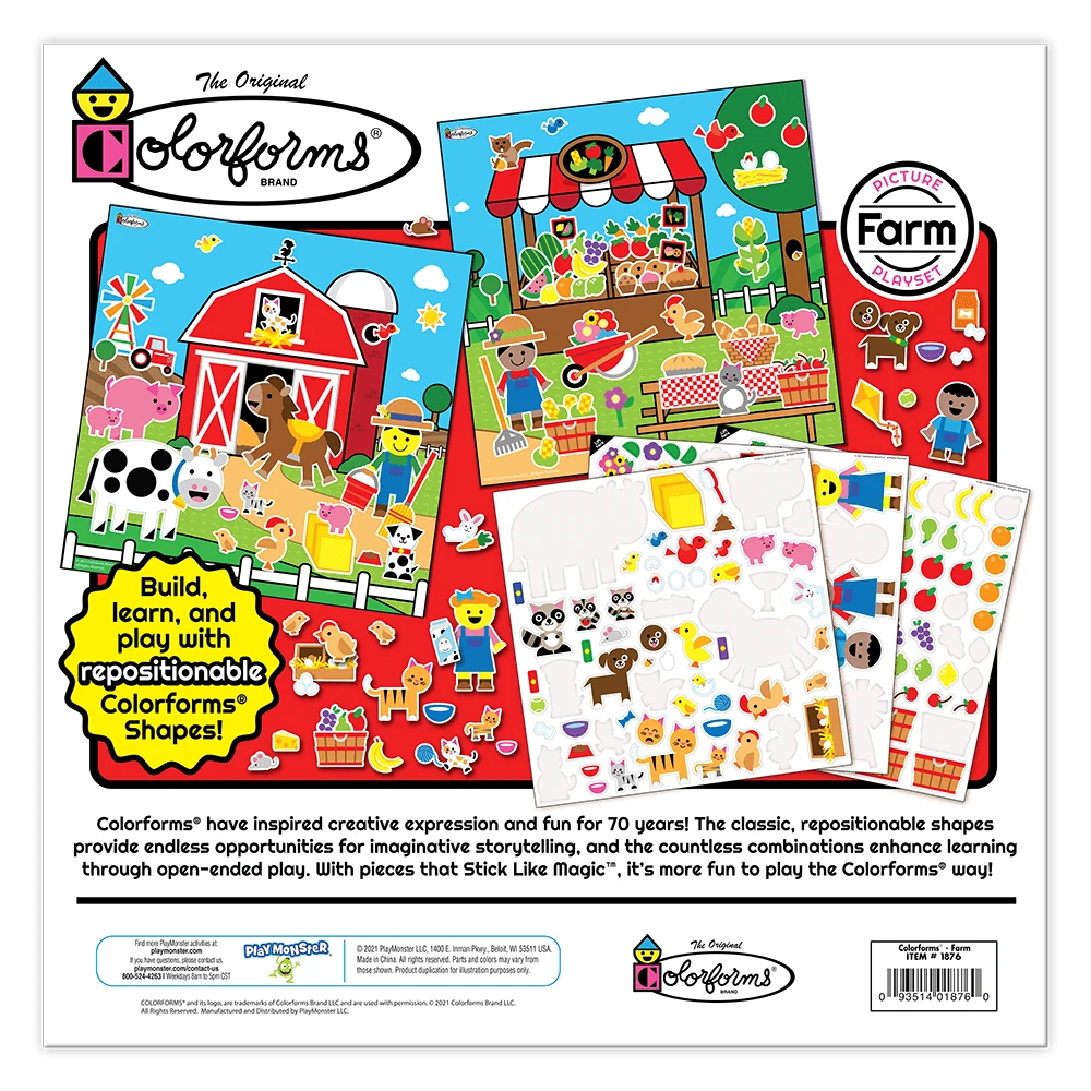 Play and learn with the Colorforms Farm Picture Play Set! Mix and match adorable pieces to stick farmers and their animals. The classic picture toy that sticks like magic makes designing scenes and telling your own stories over and over again a breeze.
