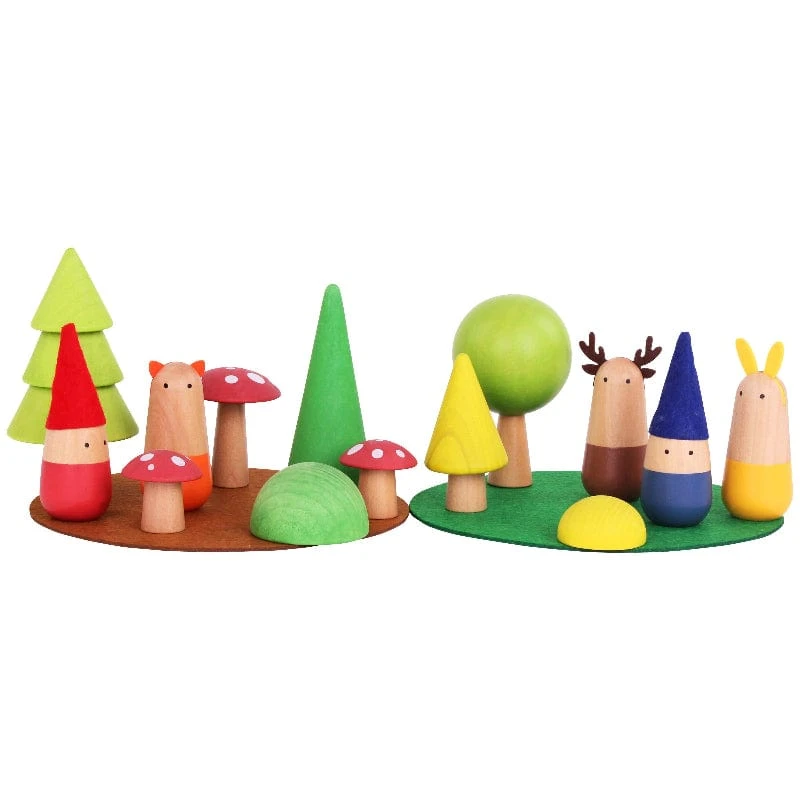 - Includes: 3 wooden animals, 3 wooden mushrooms, 5 wooden trees, 2 wooden dwarves and 2 felt mats.