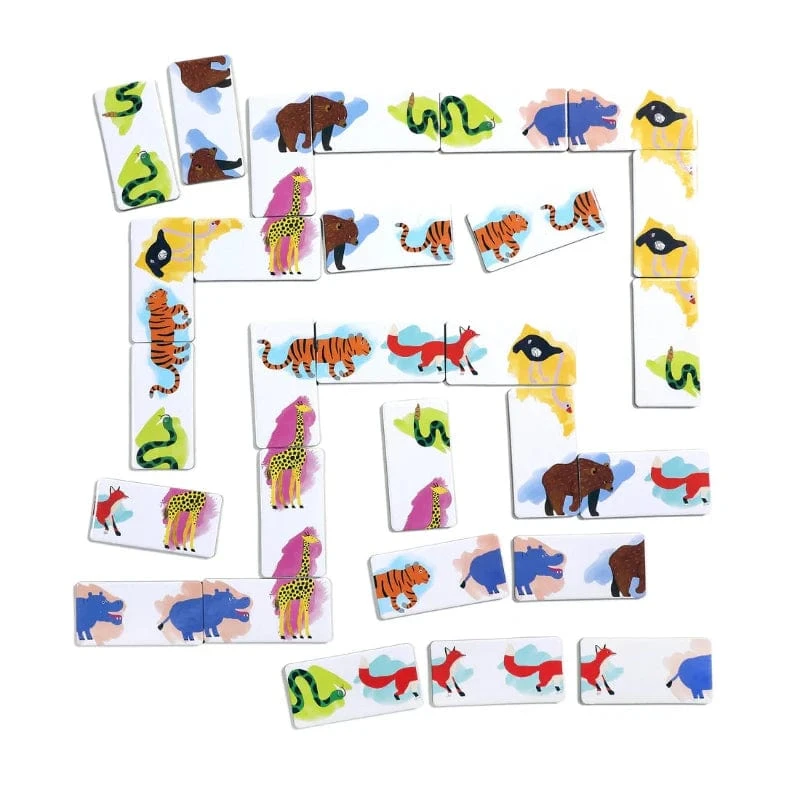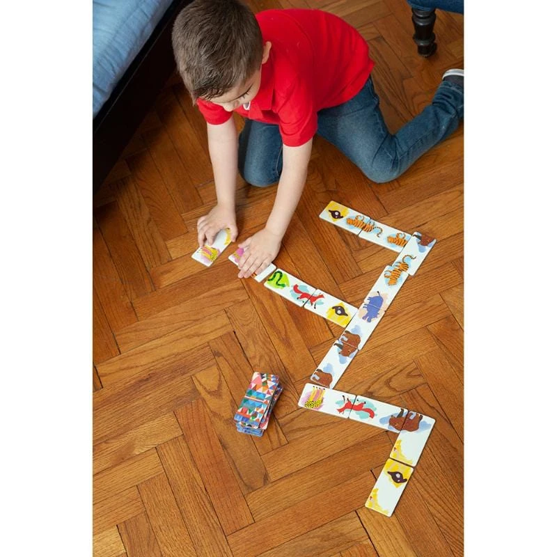 Take this Animal Parade everywhere you go! From snakes to giraffes, our Animal Parade Head to Toe Dominoes will delight children at home, at Grandpa’s house, or on vacation. A great little size to toss in your bag and take on the go. Illustrated by Monika Forsberg.