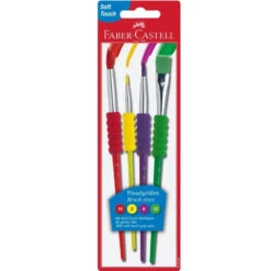 Brushes for every art project! Unique cushioned foam, non-slip grip zones are comfortable for little hands to hold while painting. Sturdy yet soft synthetic bristles provide for good color coverage and clean up with soapy water.