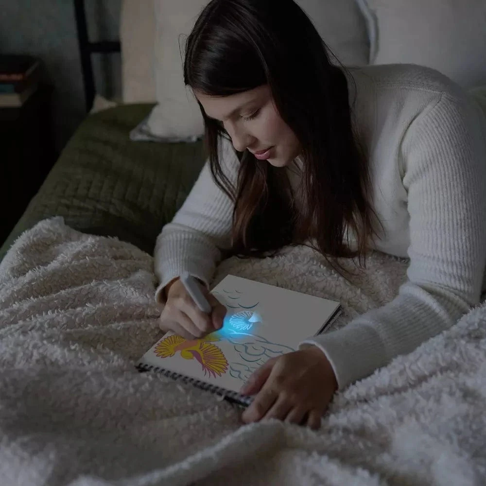 - Comes with 20 meditative scenes and innovative illuminating marker with 5 interchangeable colors, all in a detachable storage tray.