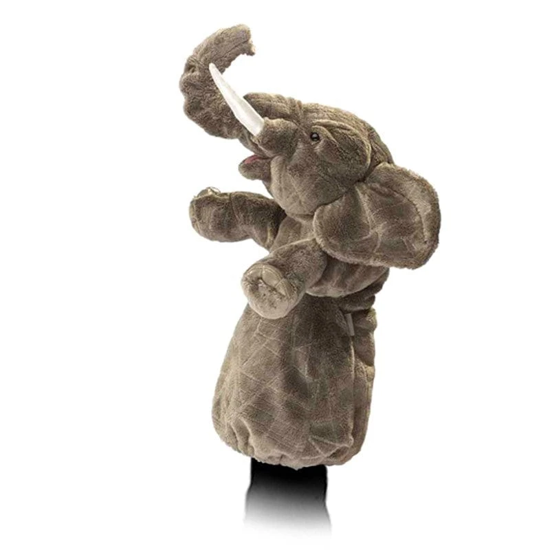 This Elephant stage puppet from Folkmanis is one armful of fun with unique fabrics with a textured “wrinkle” and a fun, movable trunk. Ideal for use in interactive stage and puppet theater, Folkmanis Puppets are also great for teaching, daycare, school, pretend play, games and parties, or to pair with a book for storytelling. Easy to feed and care for, just add lots of love and snuggly fun.