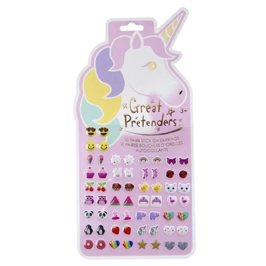 30 pairs of stick on earrings! A different pair everyday of the month. Achieve the pierced ear look without having your ears pierced with these fun animal, unicorn and glitter earrings. Hearts, stars, rainbows and so much more!