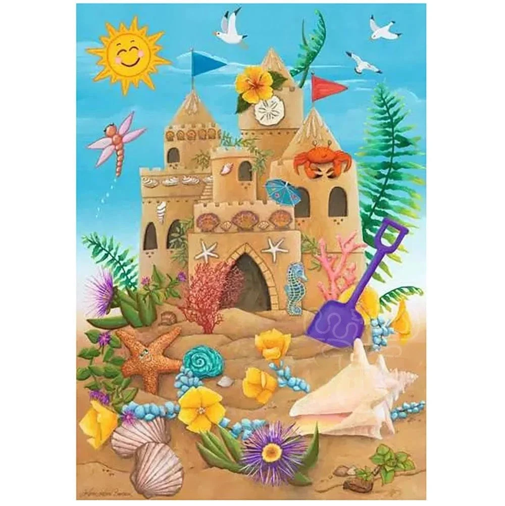 Light up your little one’s day with our “Sunshine Sandcastle” puzzle and watch them warm up to screen-free fun! This whimsical scene features a sandcastle decked out with shells, flags and more plus a cute crab standing guard. A large conch shell, scallops and a friendly starfish are scattered nearby, while seagulls, a dragonfly and smiling sun fill the sky. Jigsaw puzzles help develop hand-eye coordination, fine motor skills and problem-solving while delivering tons of fun all year round!