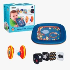 Brightly colored and full of interesting sounds and sights, the Tummy Time Sensory Kit from Halilit will make tummy time practice great fun for even the most reluctant babies. Featuring 2 engaging toys designed to occupy little hands and minds, alongside a double-sided fold-out picture card, this is a great gift set to ensure that your precious baby is happy to spend time on their tummy, strengthening those vital muscles without even realizing it.